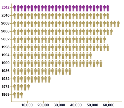 1969 – 2012觀眾數量數據表