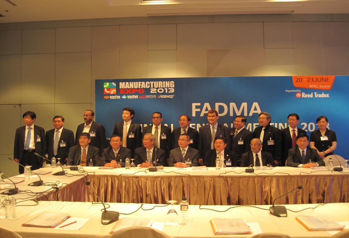 2013 Annual General Meeting of FADMA was held in Bangkok of Thailand and hosted byThai Tool & Die Industry Association on Jun.20, 2013. 30 representatives from eight countries and regions -Japan, Thailand, Malaysia, Korea, India, China, and China’s Taiwan, the Philippines presented the meeting. Mr. N.Reguraj, Chairman of FADMA presided over the meeting and gave the salutatory speech. Then Mr.Chong Thim, Treasurer of FADMA gave financial accounting report and approved the previous meeting minutes.