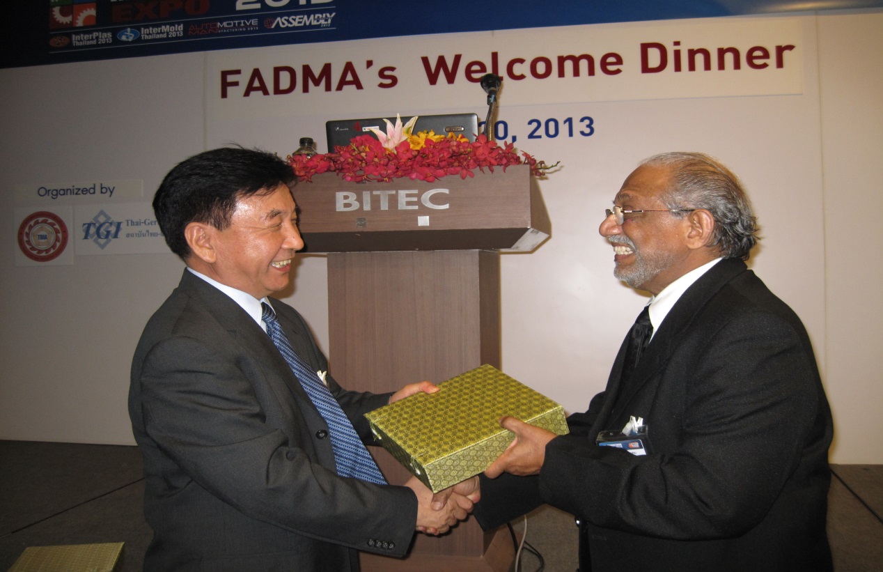 After the opening ceremony, delegations of FADMA visited Manufacturing Expo 2013. This grand event consisted of InterPlas Thailand 2013,InterMold Thailand2013, Automotive Manufacturing 2013, and Assembly Technology 2013. It was also co-located with Surface & Coatings Forum 2013, Industrial Components Subcontracting 2013, Nepcon Thailand 2013.