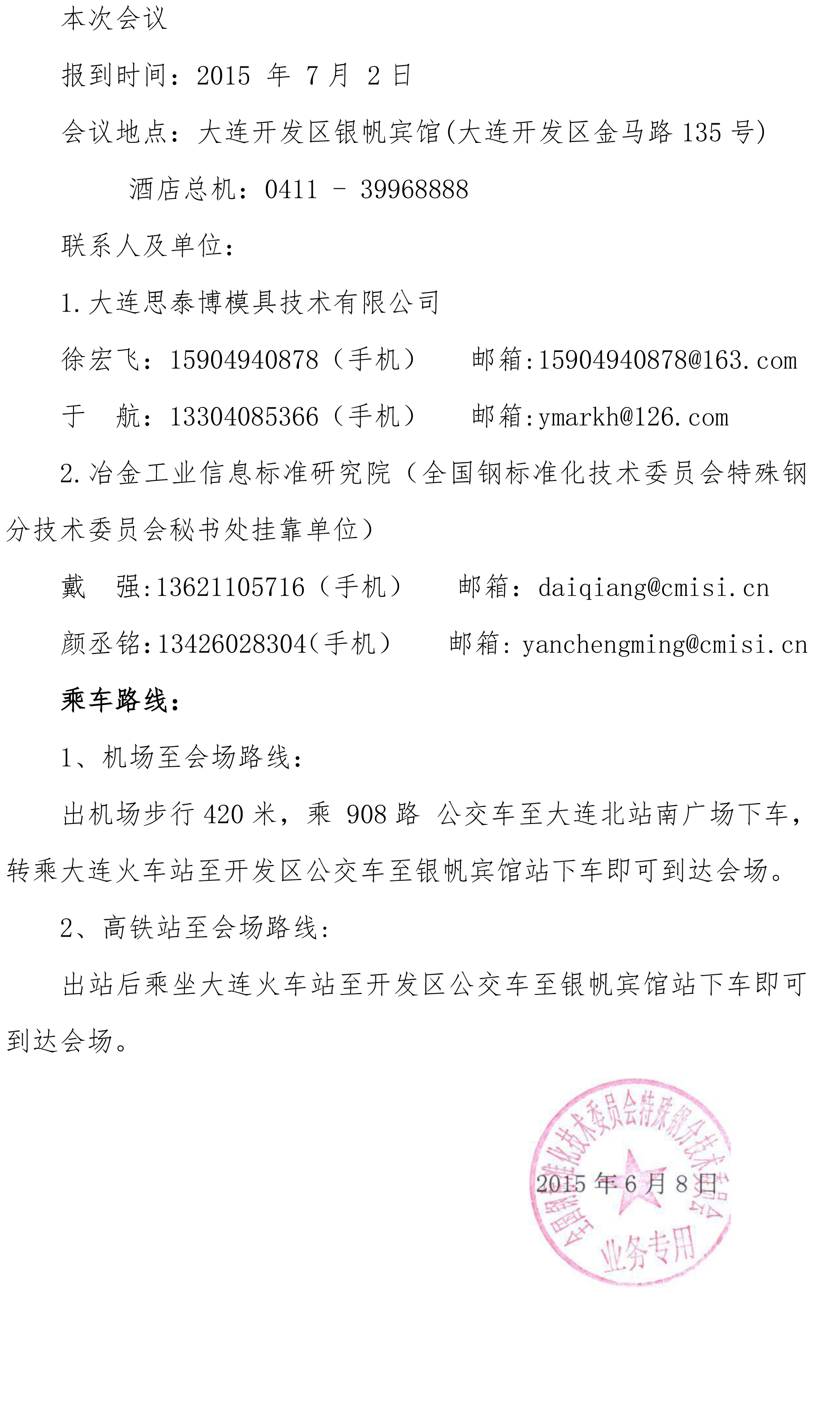關(guān)于召開(kāi)GB/T1299-2014《工模具鋼》國(guó)家標(biāo)準(zhǔn)宣貫會(huì)及《壓鑄模具用中合金熱作模具鋼》等6項(xiàng)國(guó)家標(biāo)準(zhǔn)討論會(huì)的通知