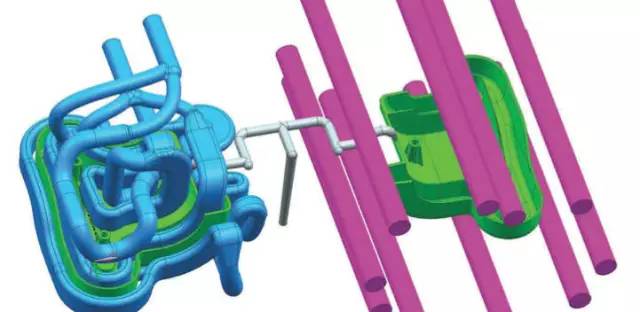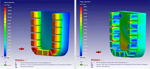 該案例中冷卻通道十分長而且貼近模具表面,帶來了極佳的冷卻效果,使得模具周期減少了15%到45%,并且提高了最終產(chǎn)品的質(zhì)量。