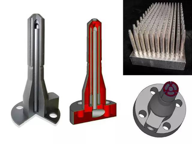 要求:不能采用傳統(tǒng)加工工藝的帶內(nèi)部冷卻流道的長銷,高硬度、高壽命和高熱傳導(dǎo)性