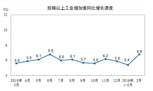 2016年3月份規(guī)模以上工業(yè)增加值增長(zhǎng)6.8%