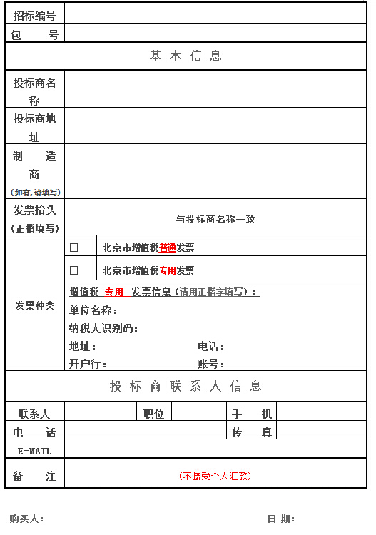 3、標書款發票將以投標商填寫的發票信息為準開票,發票開出不退不換;