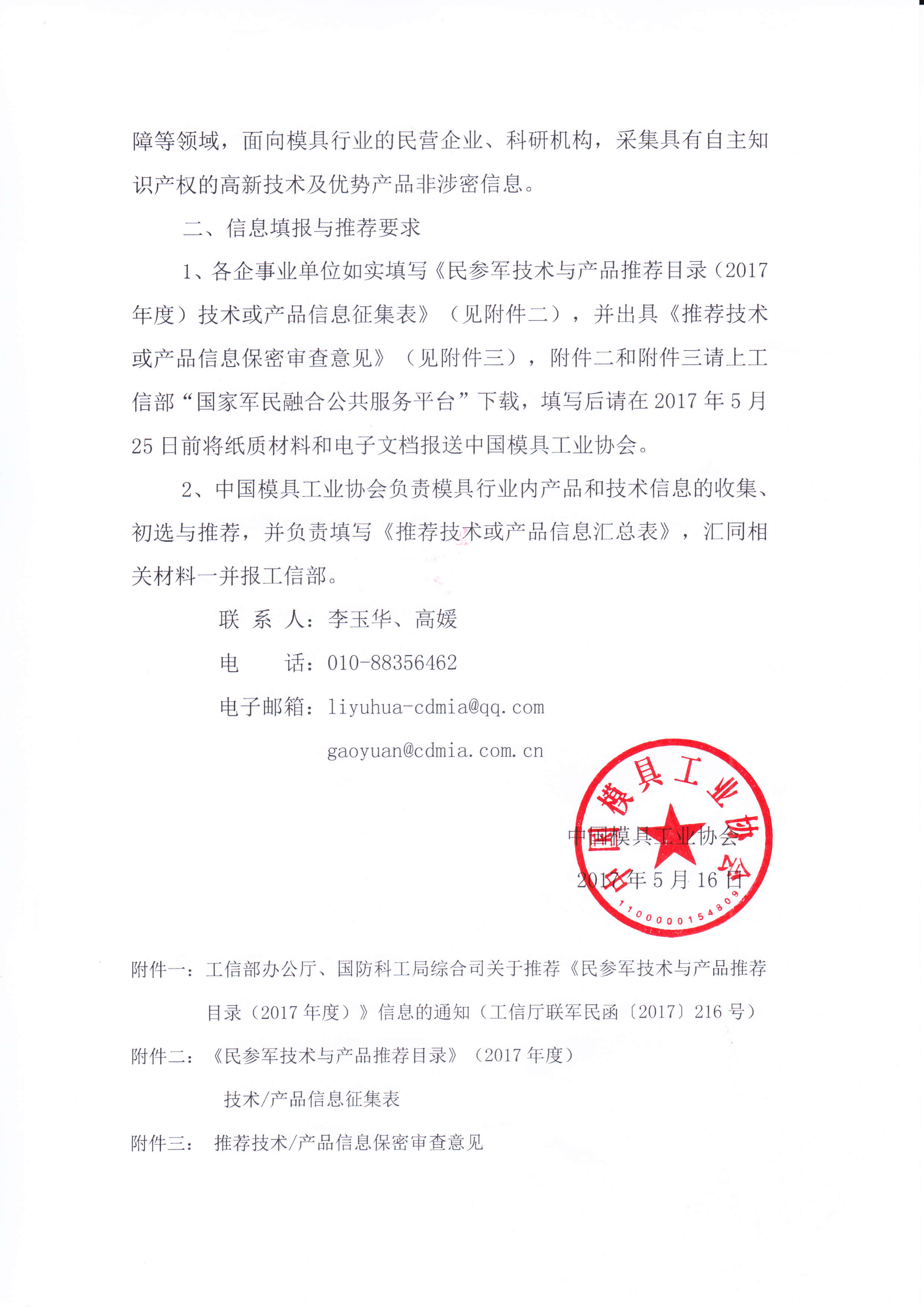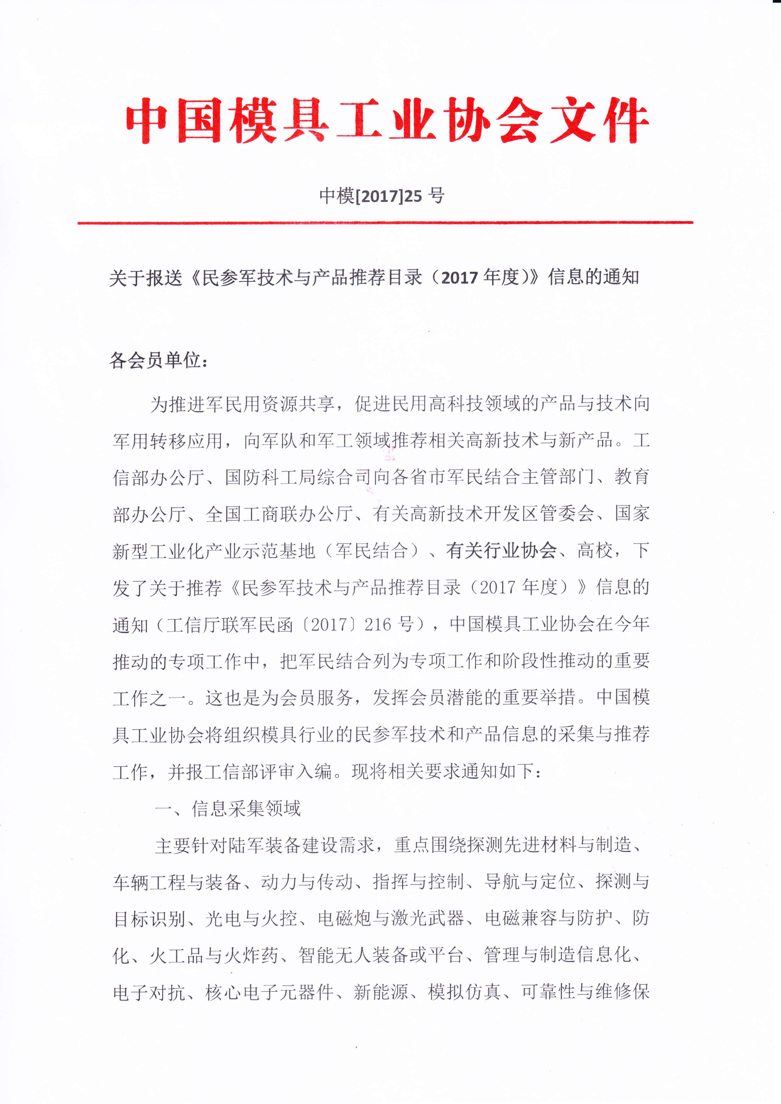 關(guān)于報(bào)送《民參軍技術(shù)與產(chǎn)品推薦目錄(2017年度)》信息的通知