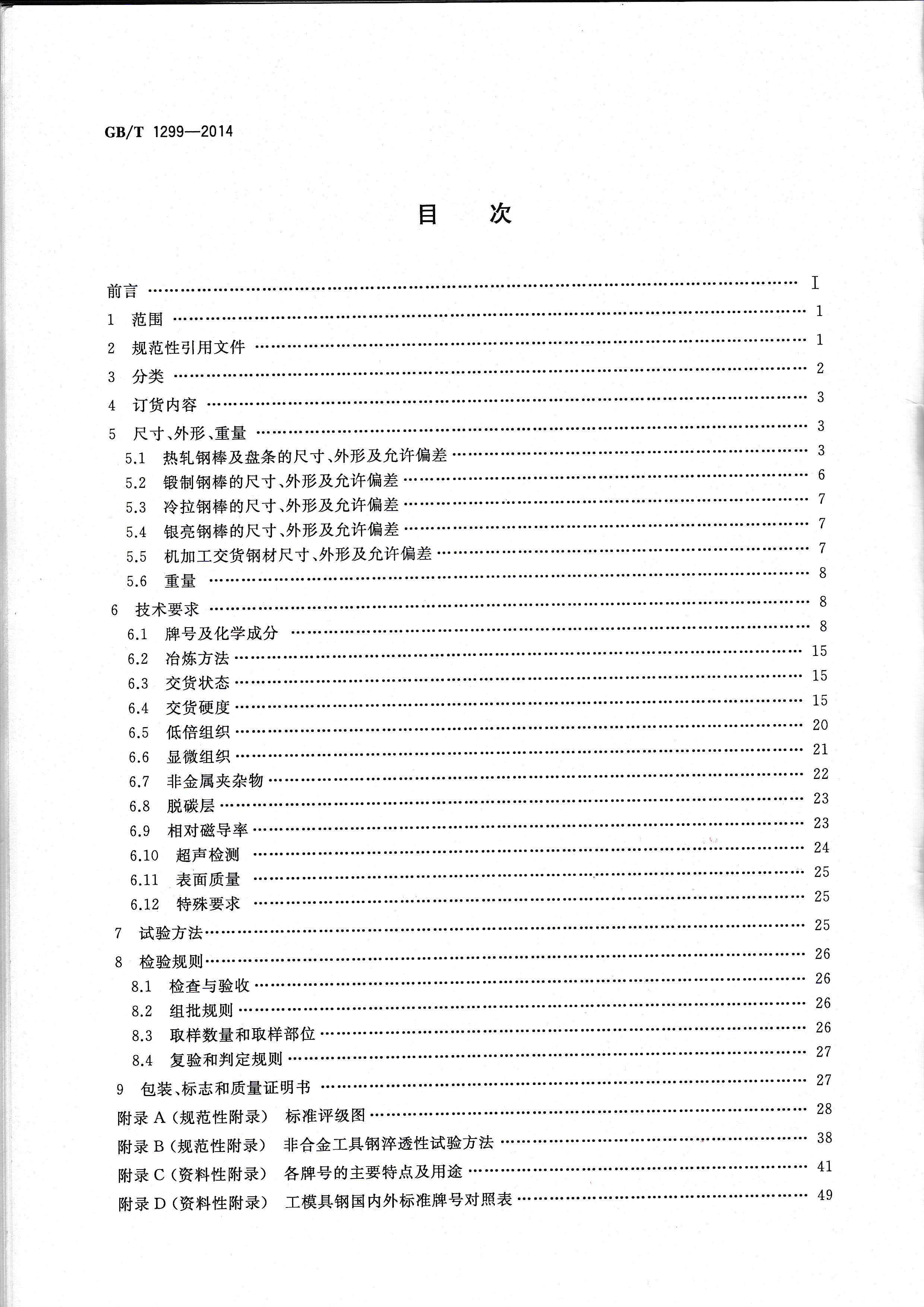 GB/T 1299-2014工模具鋼 國家標(biāo)準(zhǔn)
