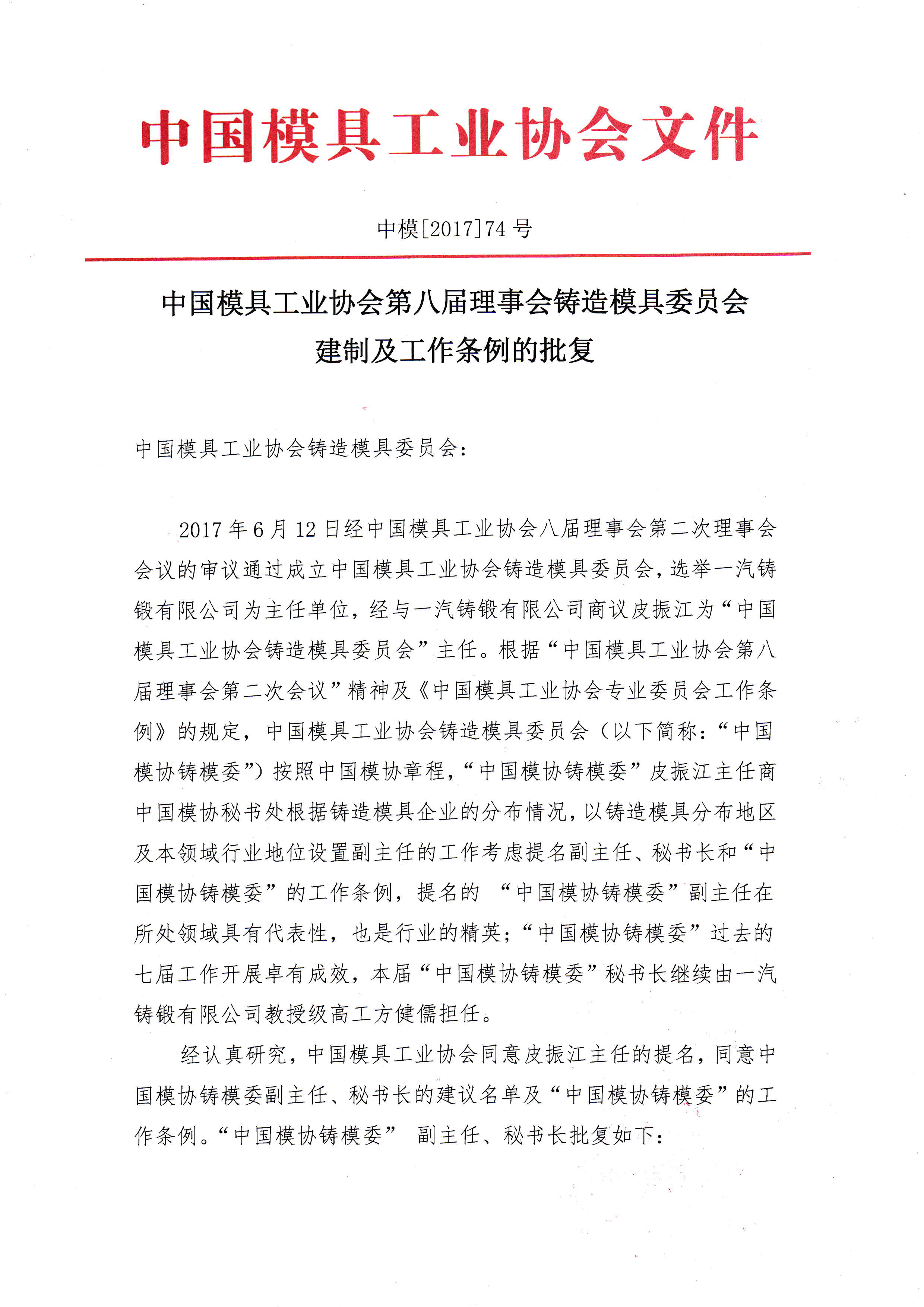 鑄造模具委員會建制及工作條例的批復(fù)