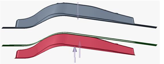 回彈補償原理[8]:利用有限元數值模擬計算回彈,然后在預估有回彈的區域作出反方向的補償值,使零件成形后的反彈正好與補償值抵消,從而得到合格產品。