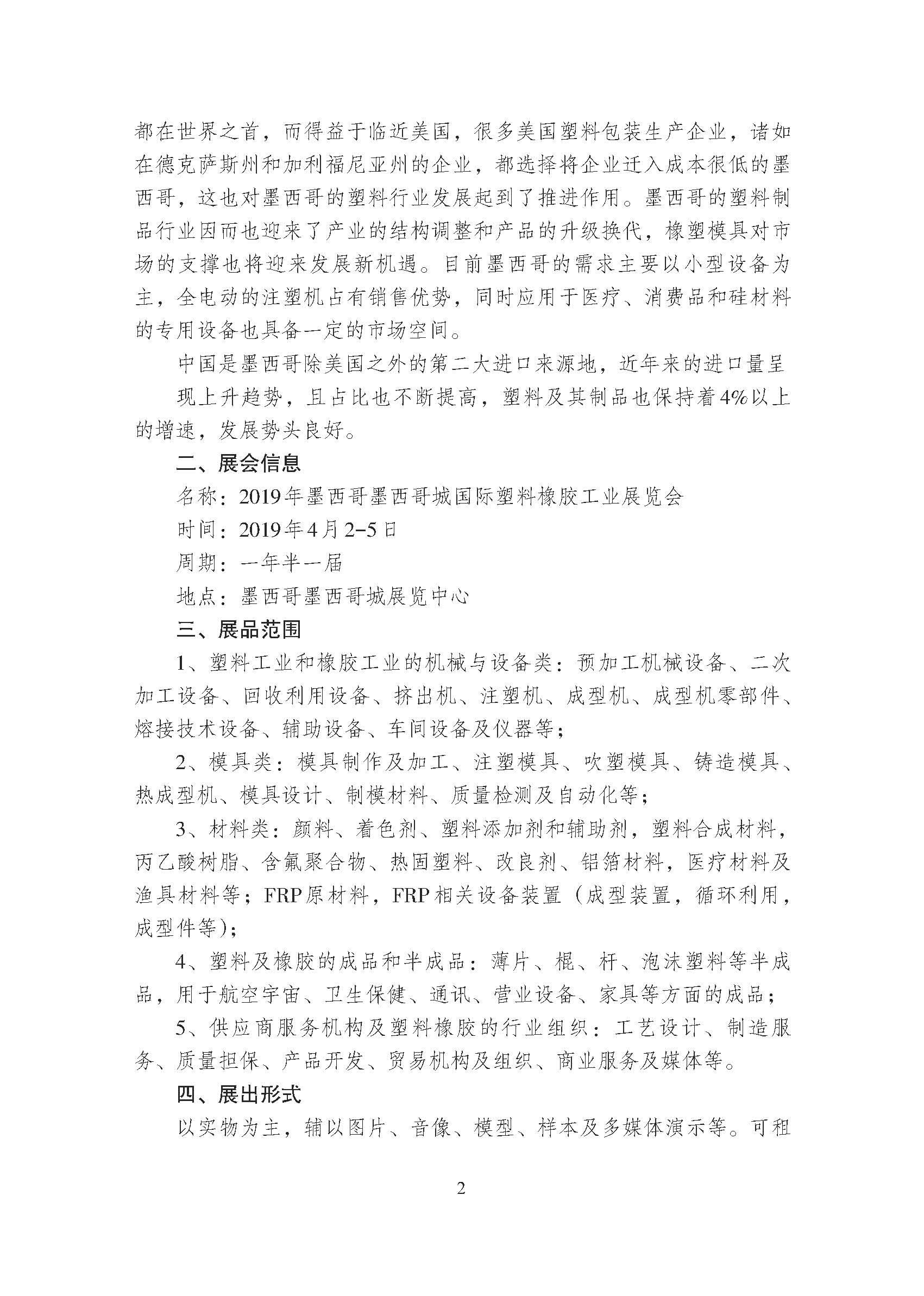 關(guān)于邀請參加2019 年墨西哥墨西哥城國際塑料橡膠工業(yè)展覽會的通知