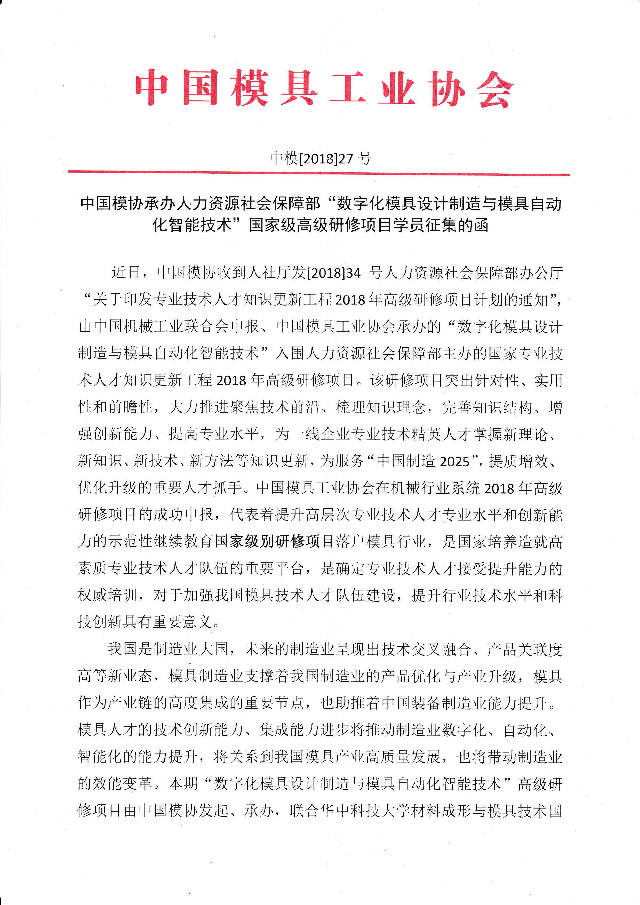 中國模協承辦人力資源社會保障部高級研修項目學員征集函