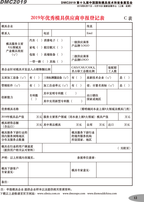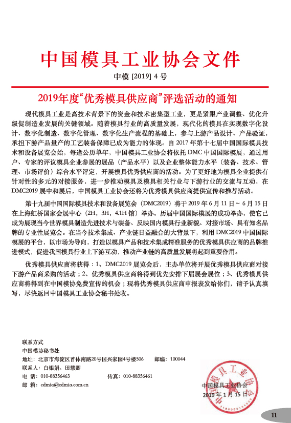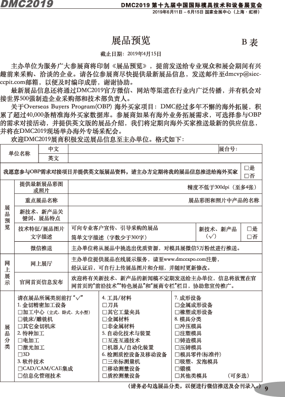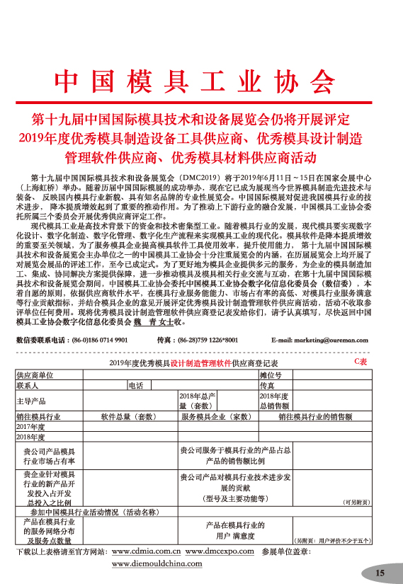 第十九屆中國國際模具技術和設備展覽會參展手冊