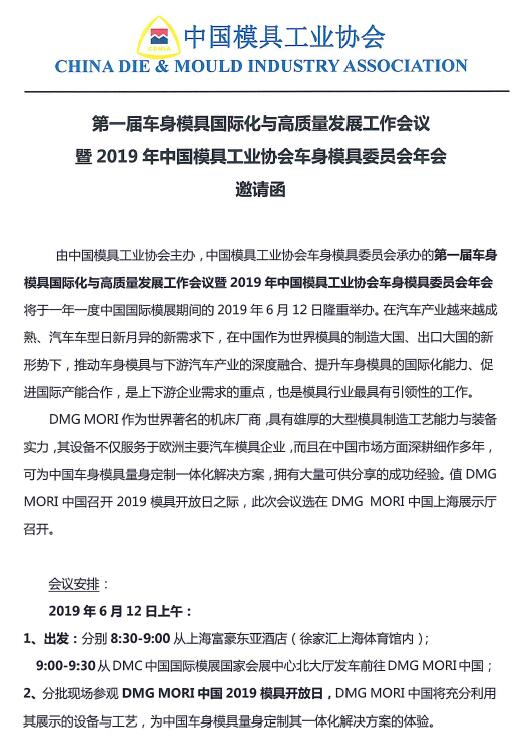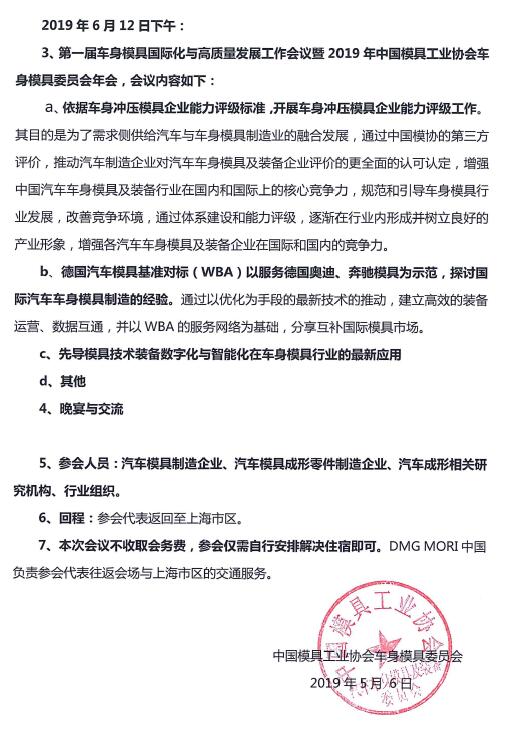 第一屆車身模具國際化與高質(zhì)量發(fā)展工作會議暨2019年中國模協(xié)車身模具委員會年會邀請函