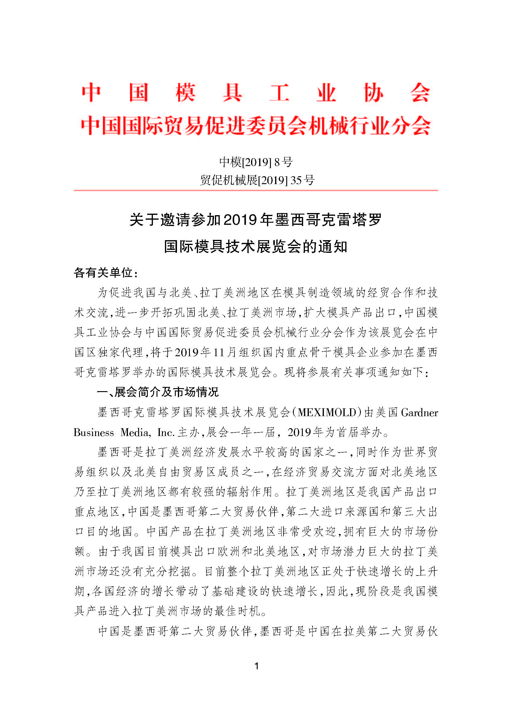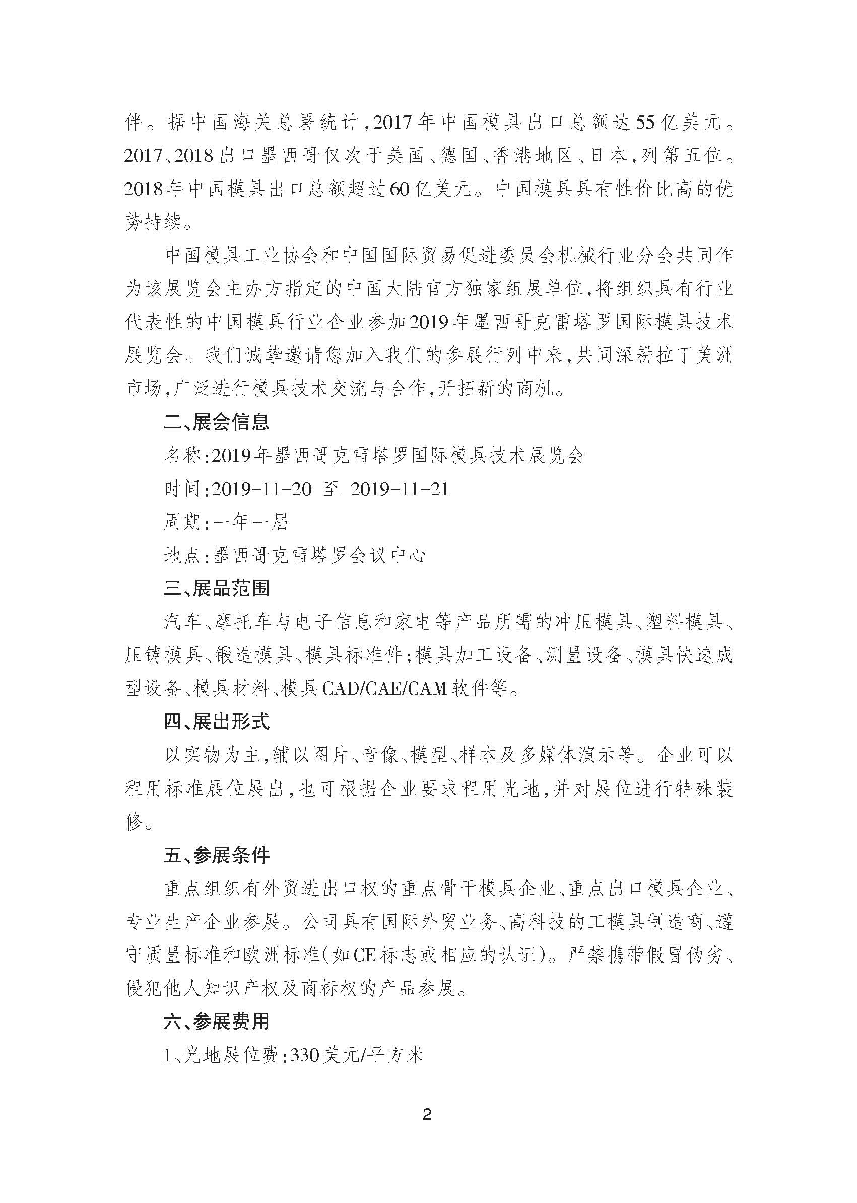 關(guān)于邀請(qǐng)參加2019年墨西哥克雷塔羅國(guó)際模具技術(shù)展覽會(huì)的通知