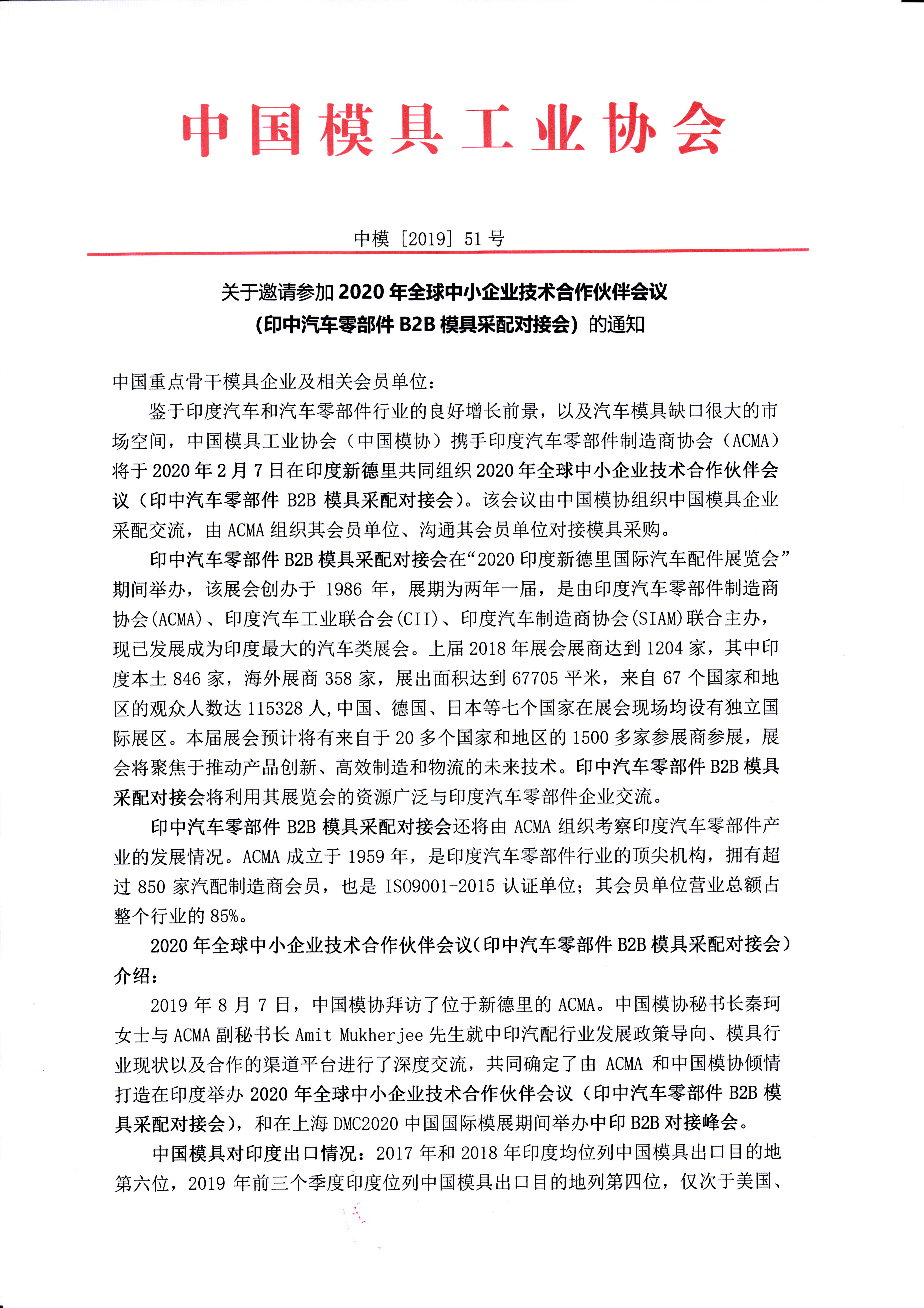 關于邀請參加2020年全球中小企業技術合作伙伴會議的通知