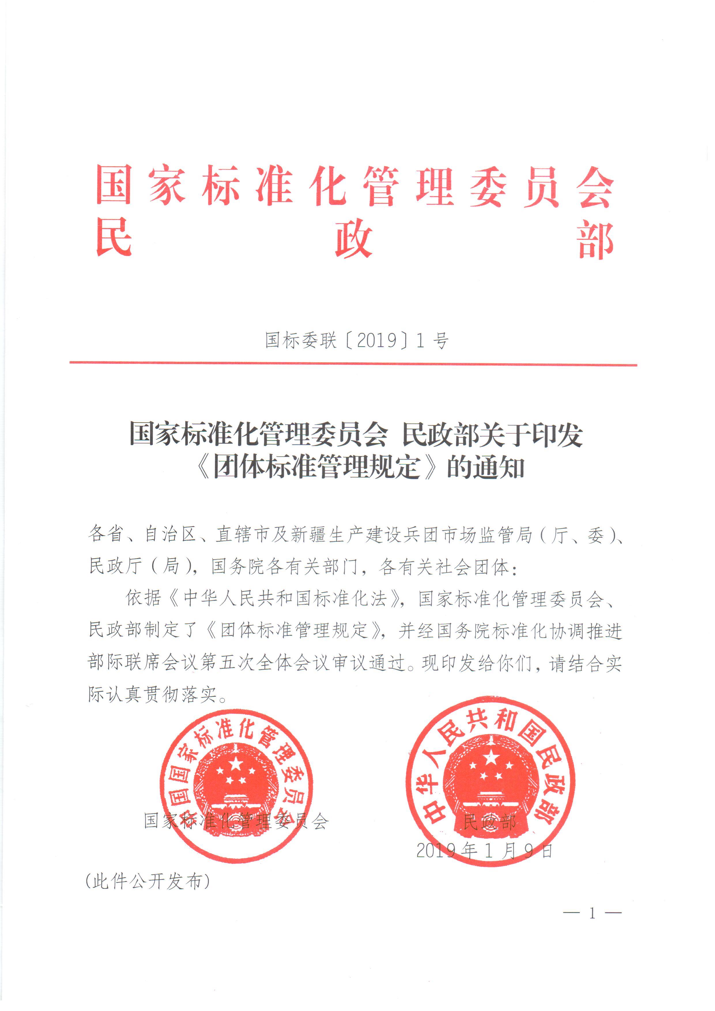 國家標準化管理委員會 民政部關于印發《團體標準管理規定》的通知