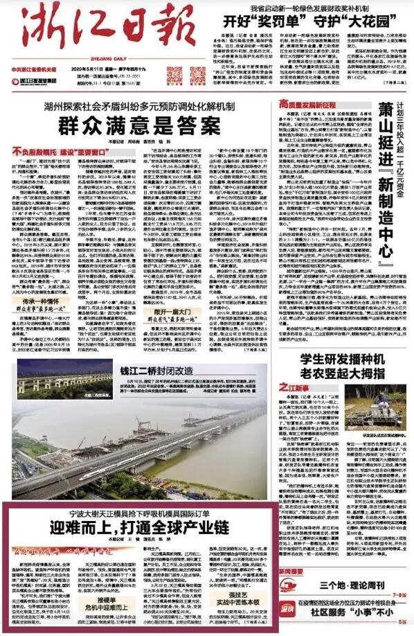 “3月底,總書記到訪北侖大碶高端汽配模具園區,給我們帶來莫大的鼓舞和信心。”身兼寧波市模具行業協會秘書長,張小巖牽頭打造的“中模云”工業互聯網平臺即將上線,該平臺吸引全球訂單分享給國內企業做,并引進先進技術,帶動中國模具行業高質量發展。同時聯合浙江大學寧波研究院、浙大寧波理工學院建實驗室、研發新項目,推進寧波模具智能制造公共服務平臺和產業學院建設,定向培養高端模具研發人才,接入高端模具前沿科技研發。