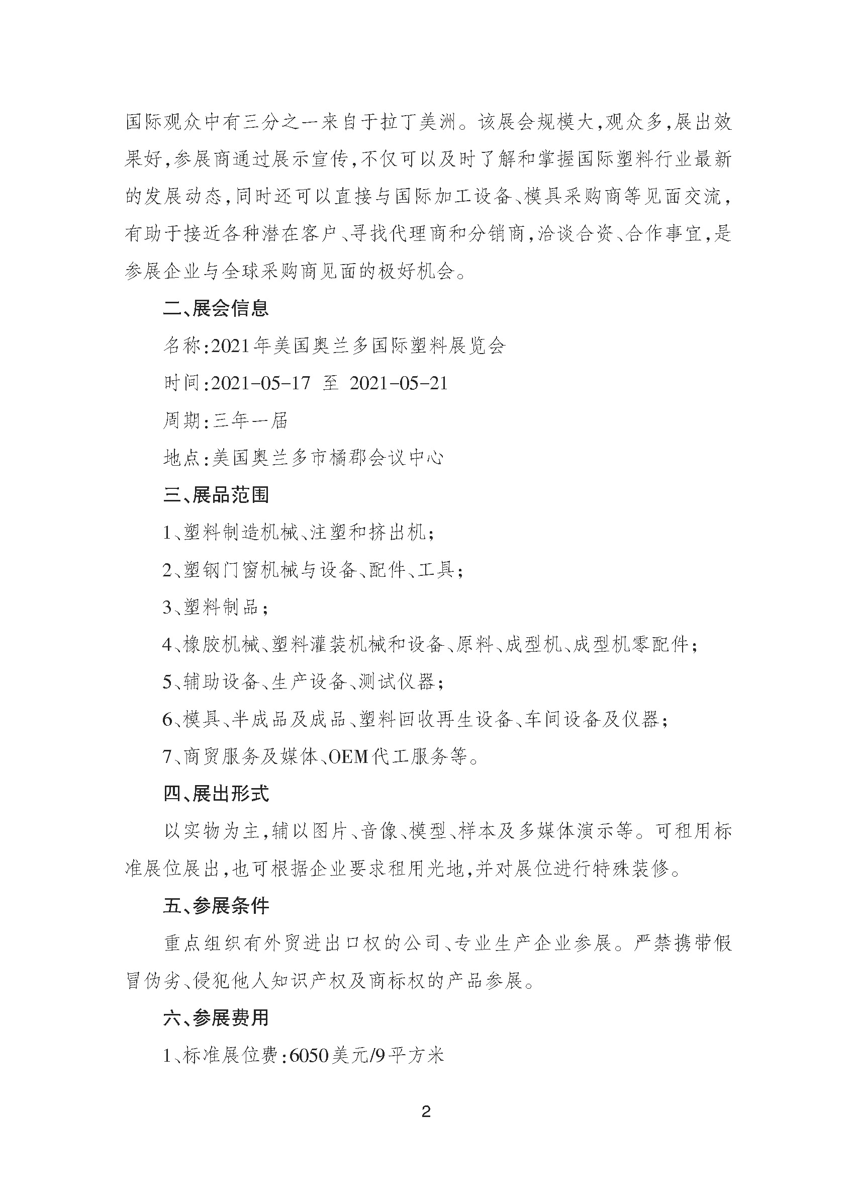 關于邀請參加2021年美國奧蘭多國際塑料展覽會的通知