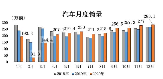 據中國汽車工業協會統計分析,從各月汽車產銷情況來看,全年呈現先抑后揚的發展態勢。一季度汽車產銷受疫情影響大幅下降。但是第二季度隨著疫情形勢得到有效扼制,從4月開始汽車市場逐步恢復,月度銷量同比持續保持增長,截至12月,汽車產銷已連續9個月呈現增長。