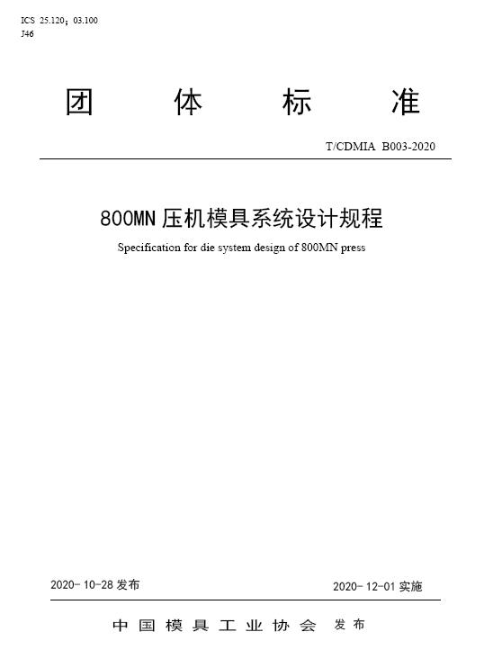 中國模協(xié)標(biāo)準(zhǔn)B003-800MN壓機(jī)模具系統(tǒng)設(shè)計規(guī)程-2020