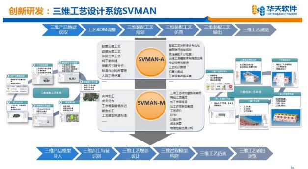 SVMAN是基于三維產品模型的計算機輔助工藝設計(3DCAPP)系列工具型產品, 包括三維裝配工藝設計系統SVMAN-A和三維機械加工工藝設計系統SVMAN-M。SVMAN將工藝設計思路和方法融入到三維產品模型的可視化交互過程中,以三維模型、動畫等形式,模擬產品在工廠的制造過程,并將工藝設計發布至終端,指導現場生產。