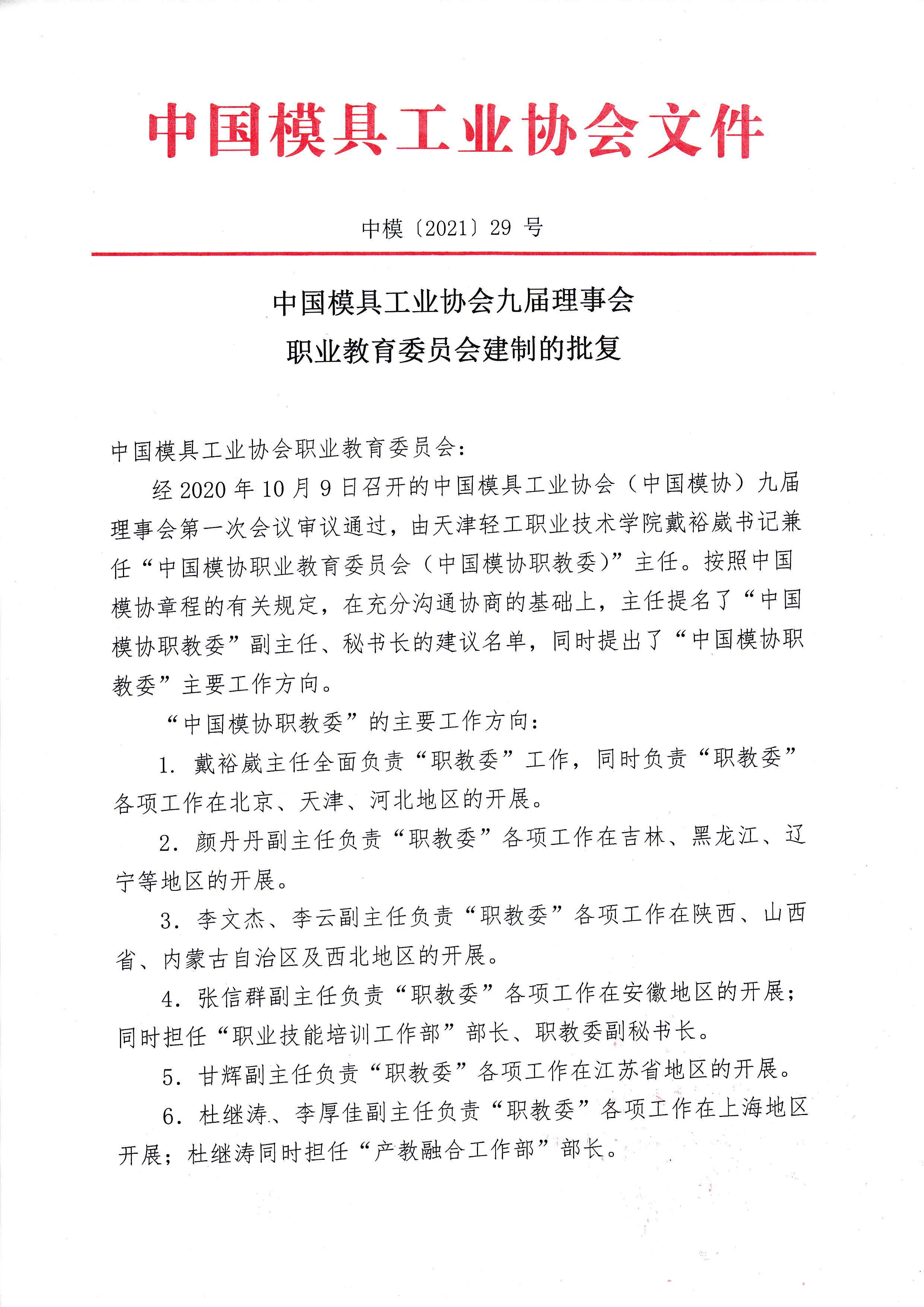 第九屆理事會職業(yè)教育委員會建制的批復(fù)
