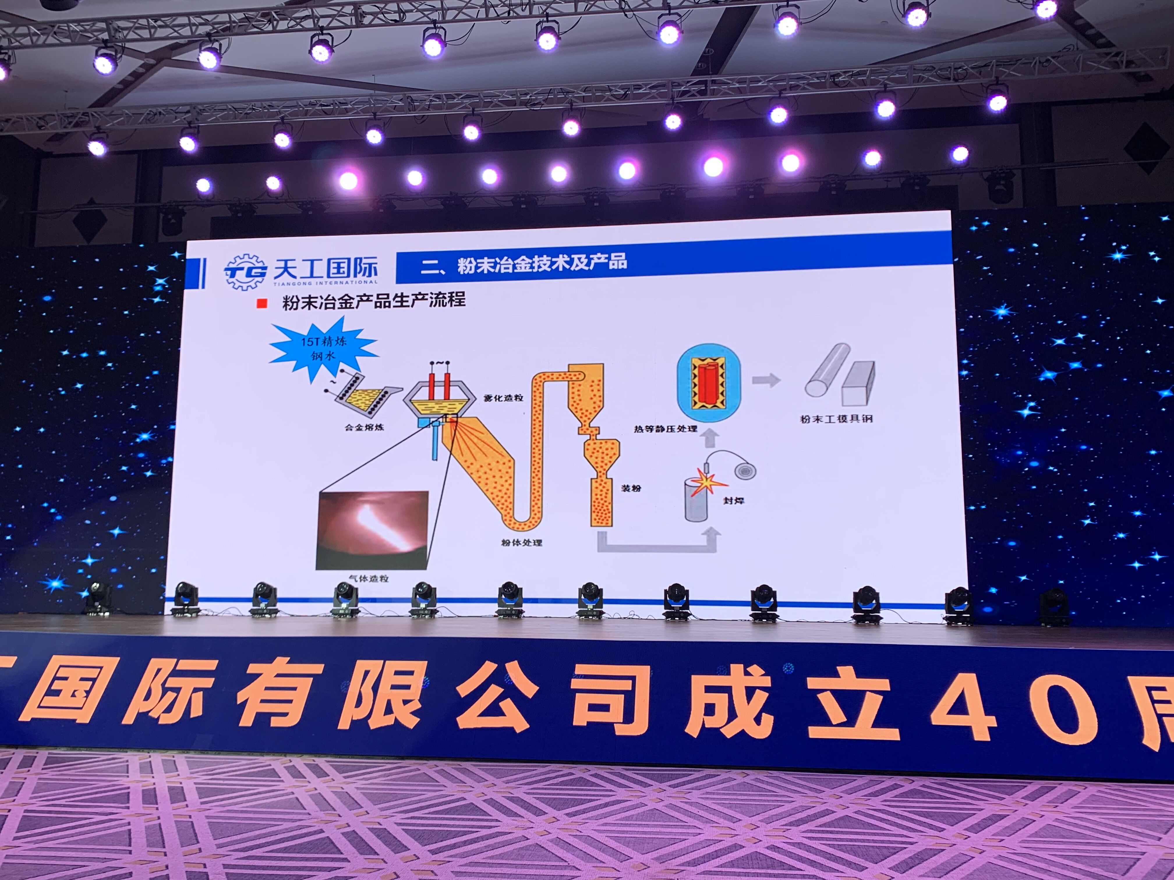 天工國際副總經理、首席技術官廖俊介紹天工“高合金粉末工模具鋼高端模具鋼”的粉末冶金技術及產品