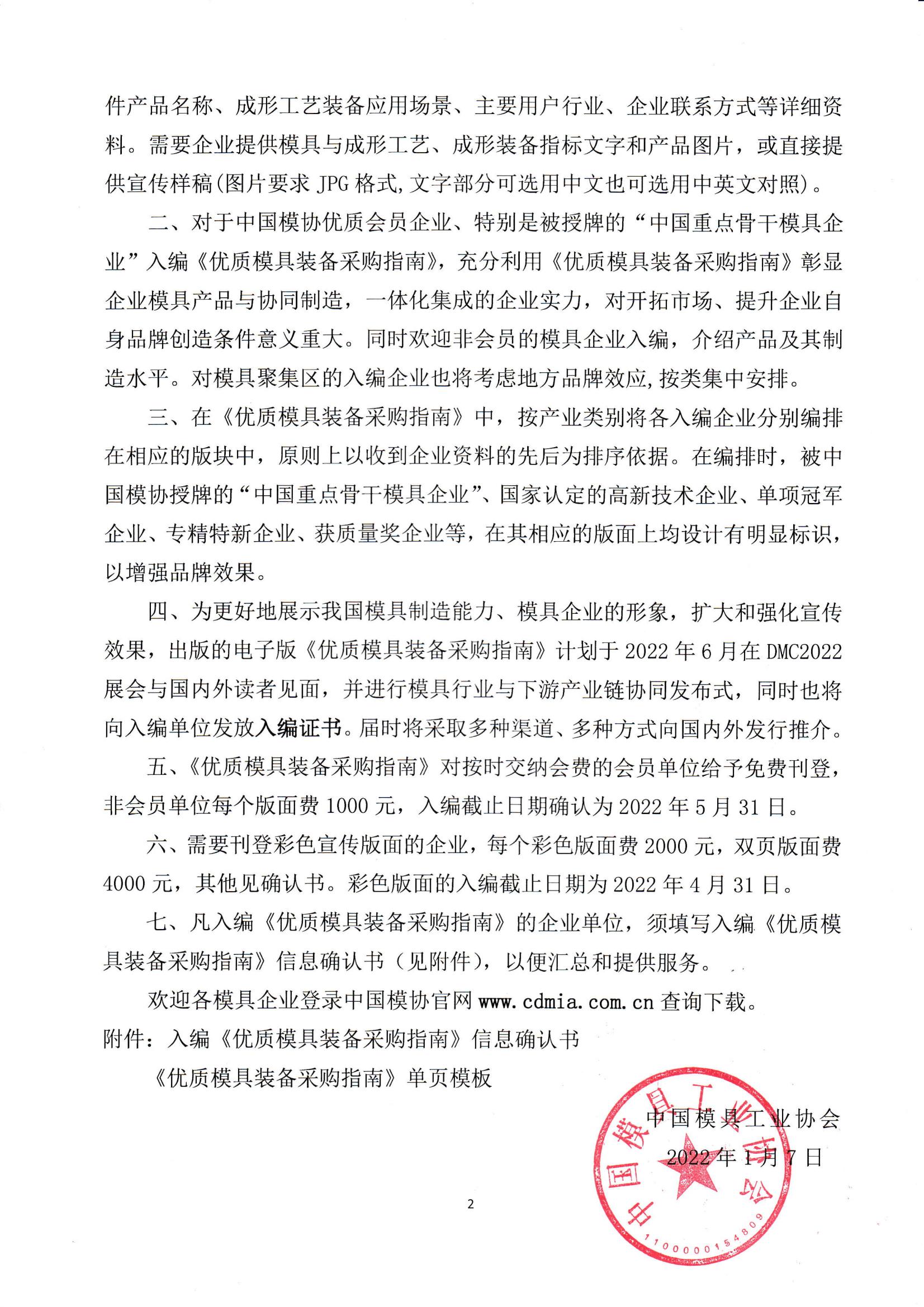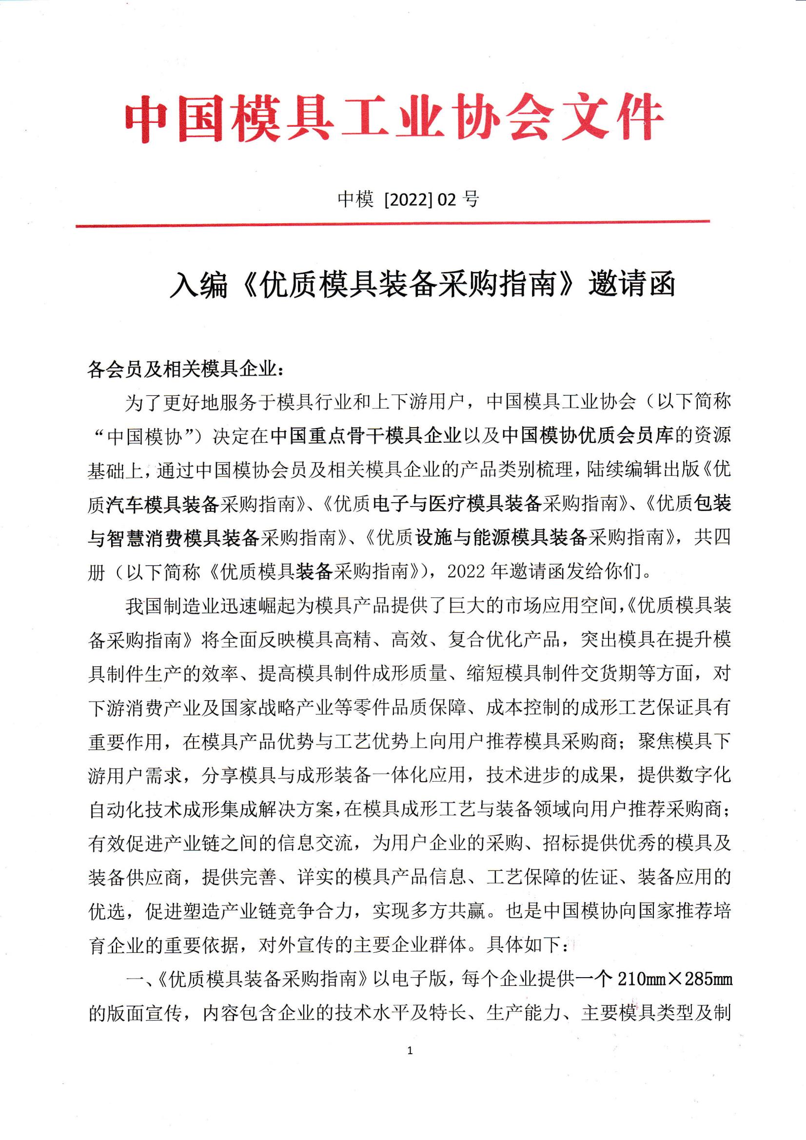 入編《優(yōu)質(zhì)模具裝備采購(gòu)指南》邀請(qǐng)函