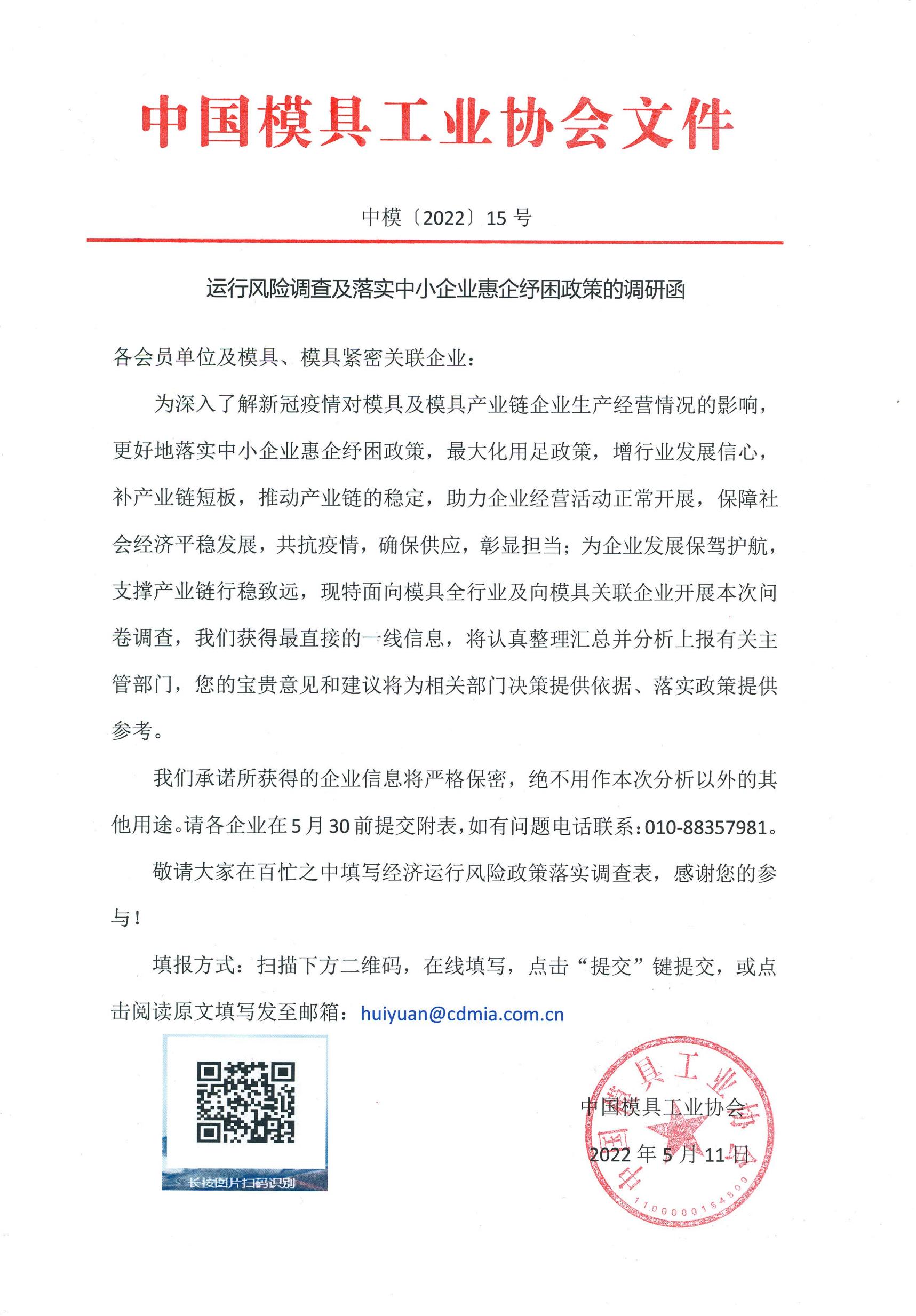 運(yùn)行風(fēng)險調(diào)查及落實(shí)中小企業(yè)惠企紓困政策的調(diào)研函