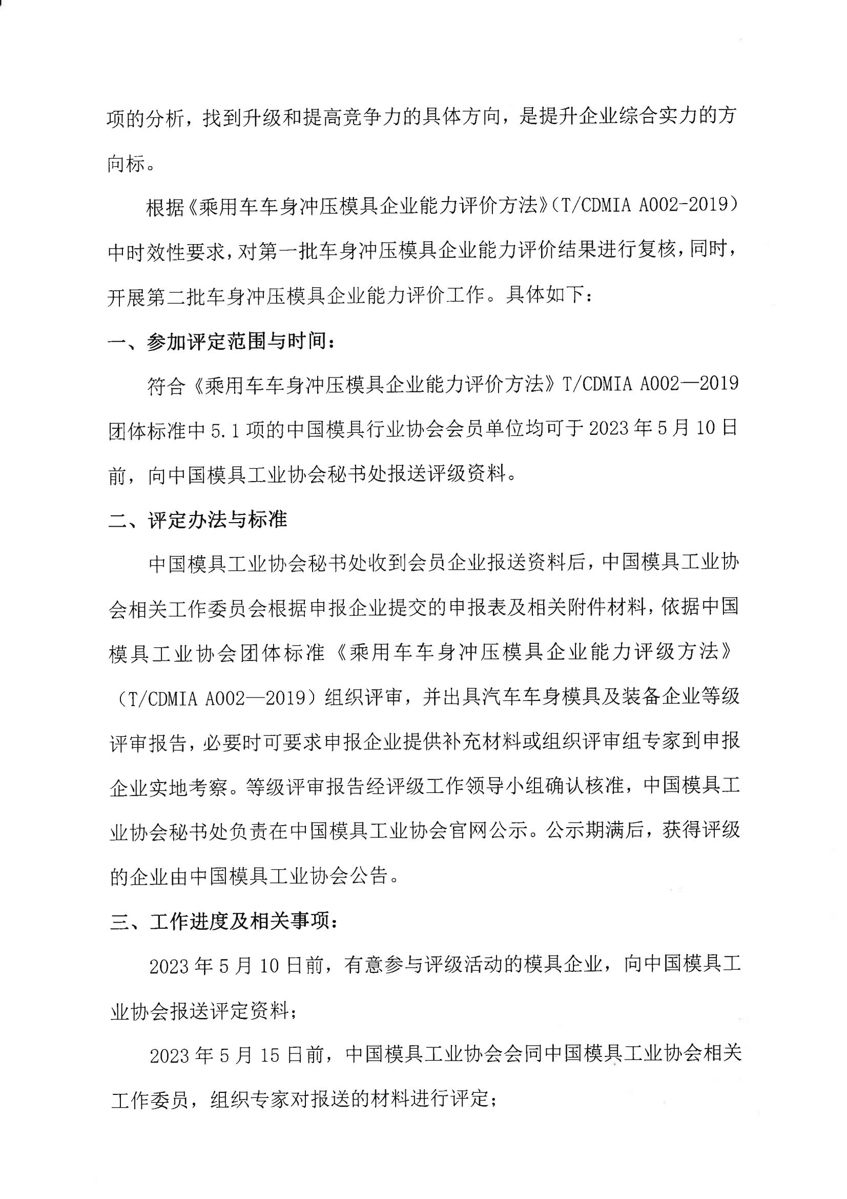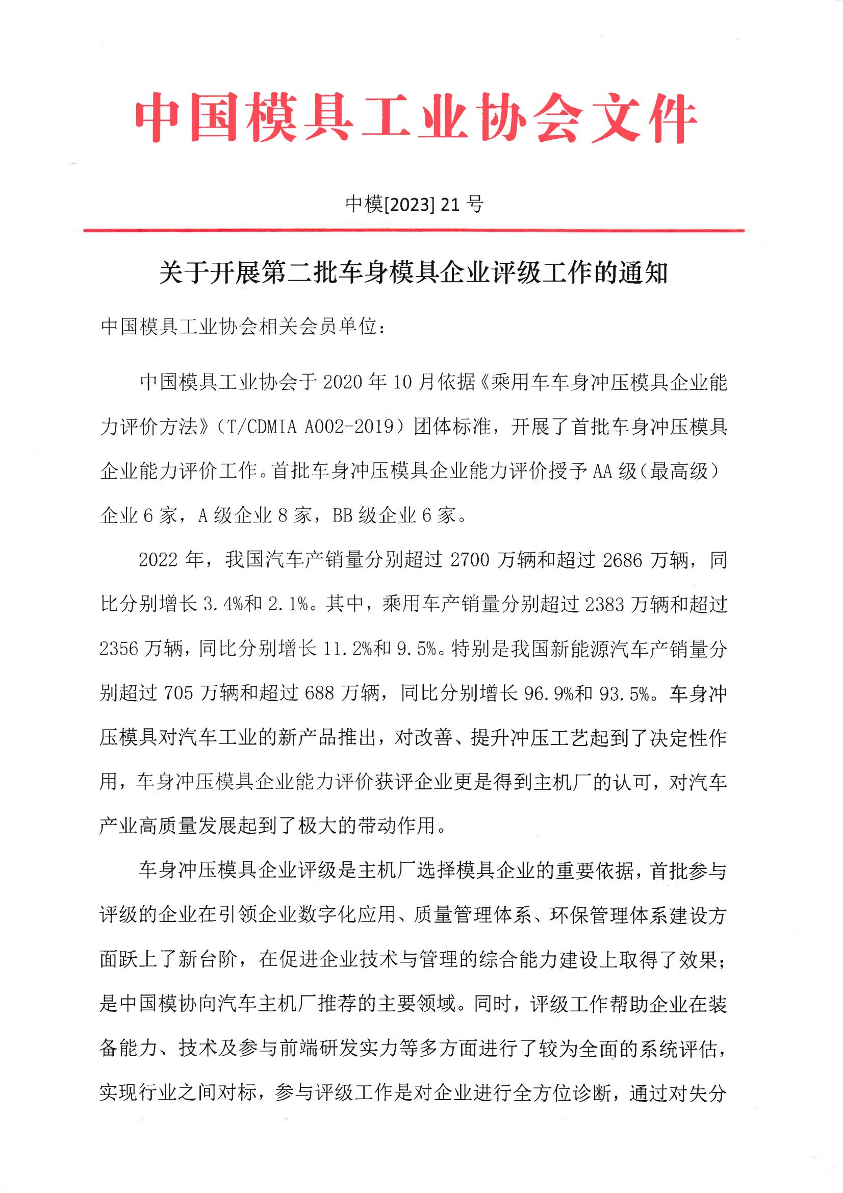 關于開展第二批車身模具企業評級工作的通知