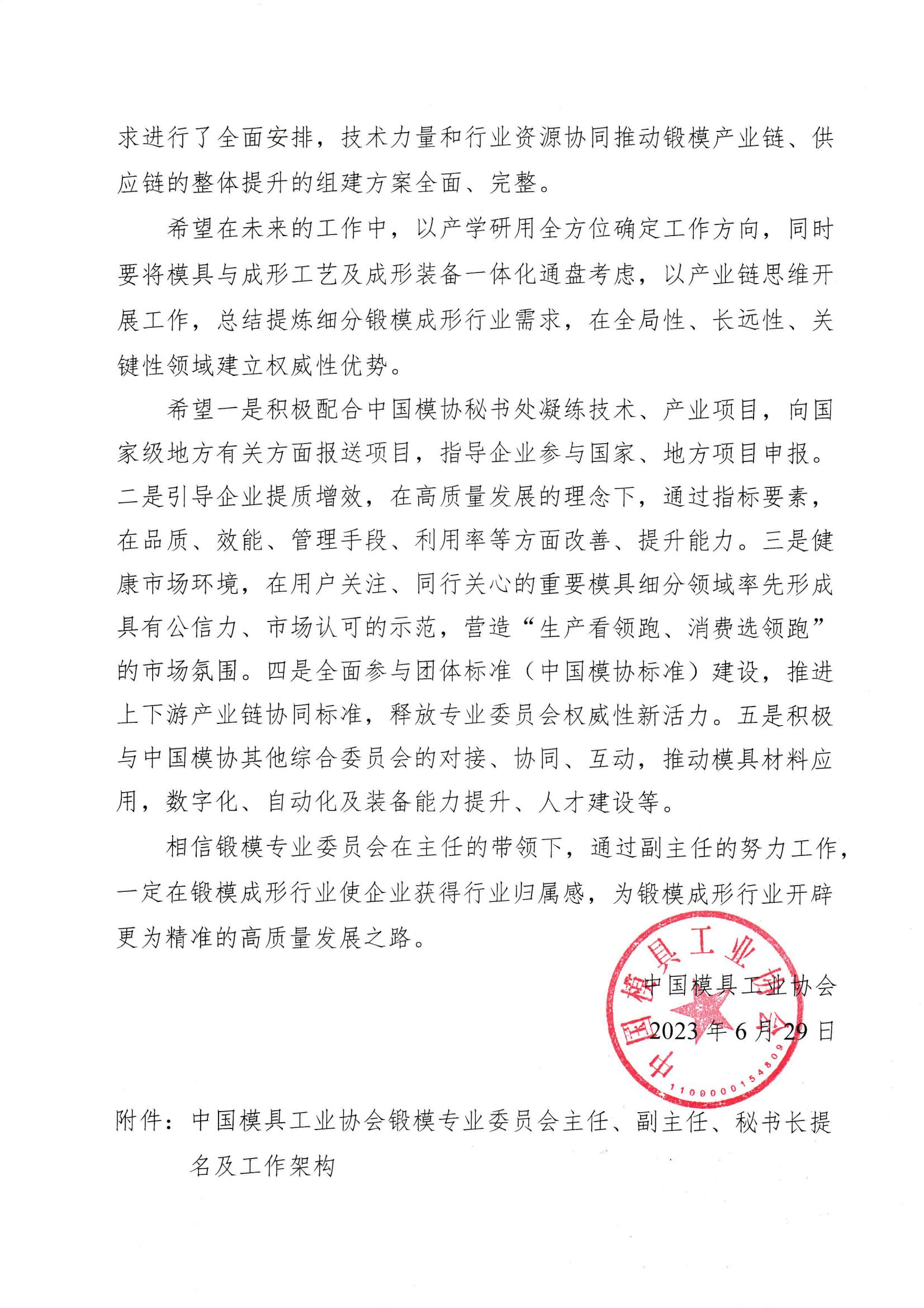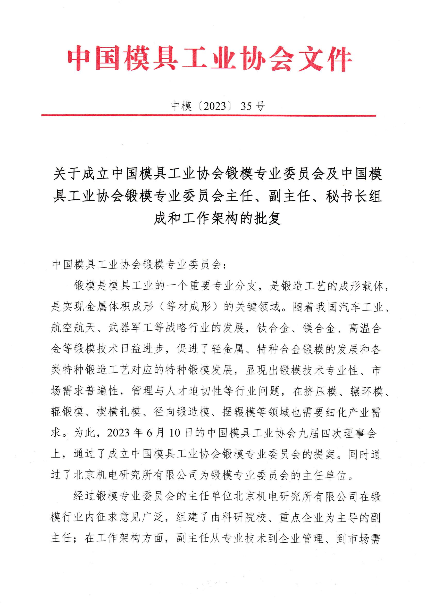 關(guān)于成立中國模具工業(yè)協(xié)會鍛模專業(yè)委員會的批復(fù)