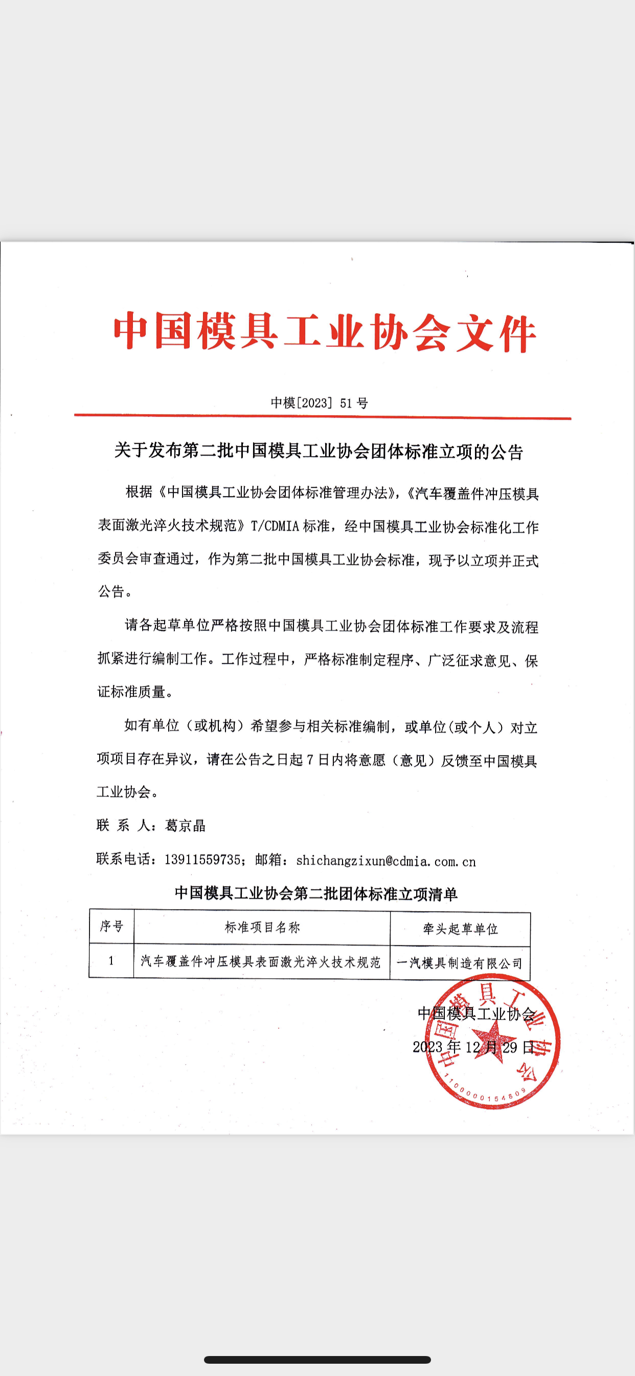 第二批中國模具工業(yè)協(xié)會團體標準立項公告