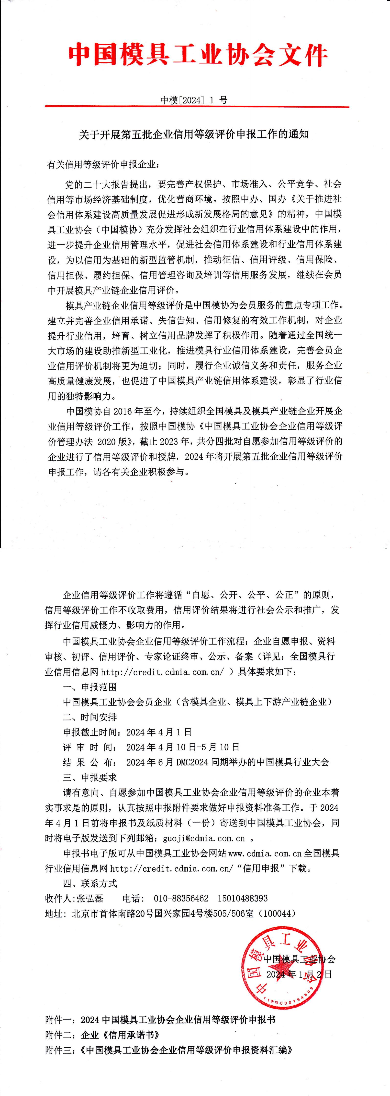 附件一:2024中國模具工業協會企業信用等級評價申報書.docx