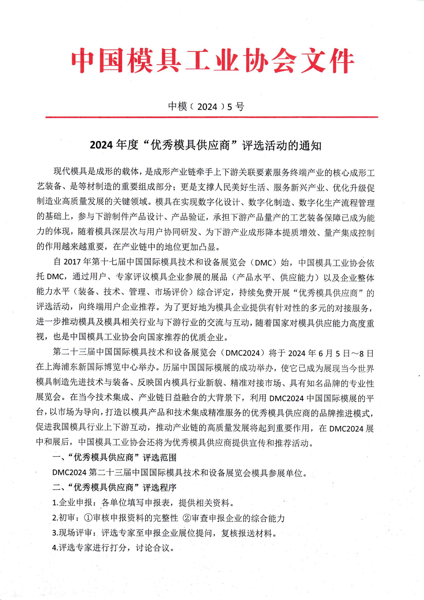 2024年度“優秀模具供應商”評選活動的通知