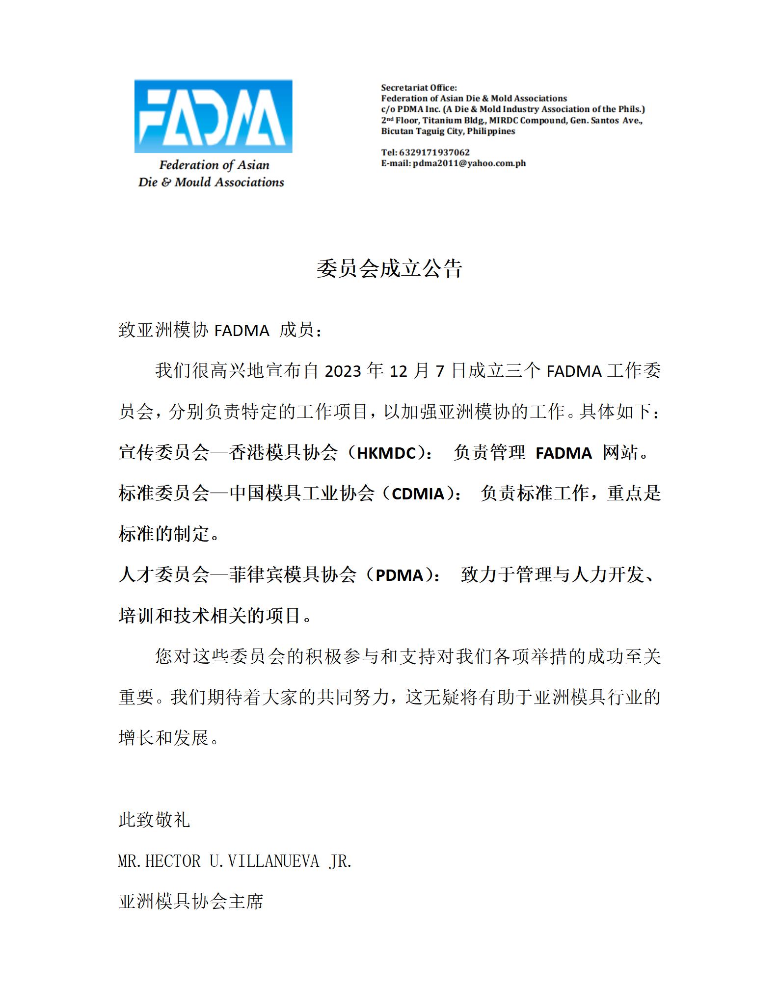 亞洲模協委員會成立公告