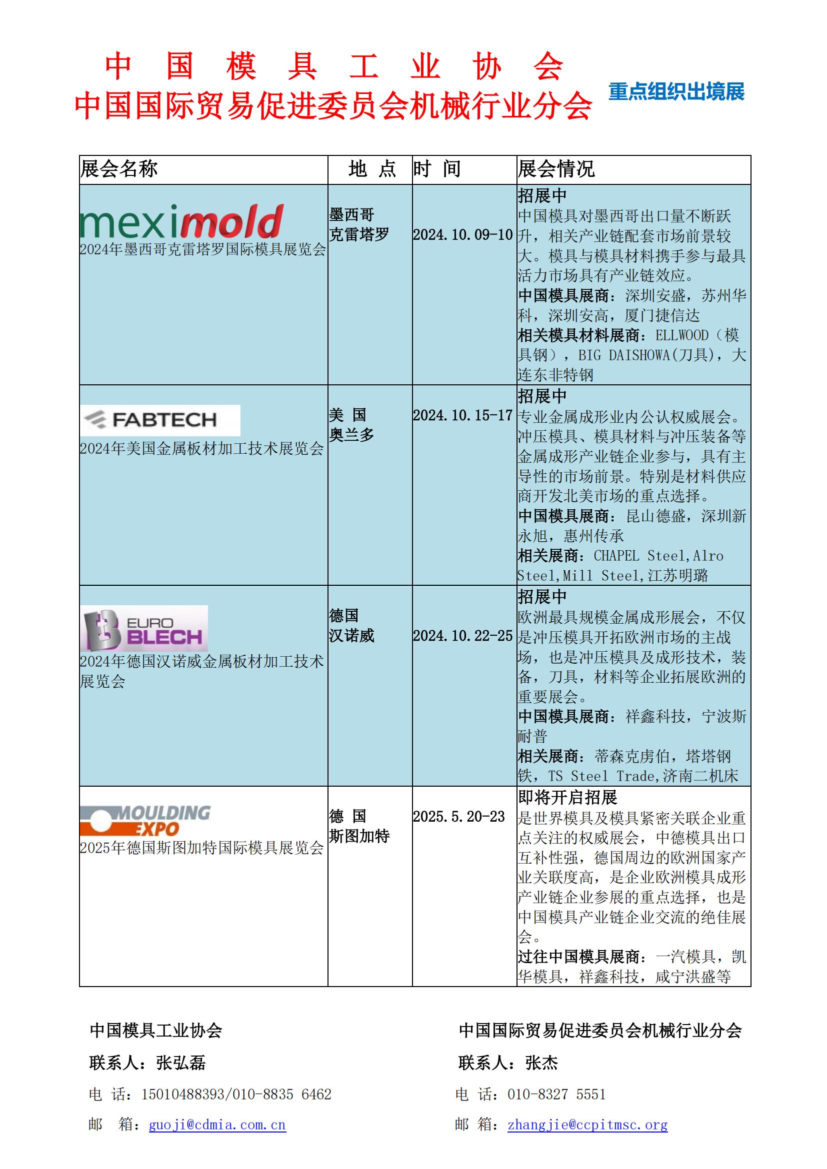 2024下半年-2025年國際模具展會一覽表