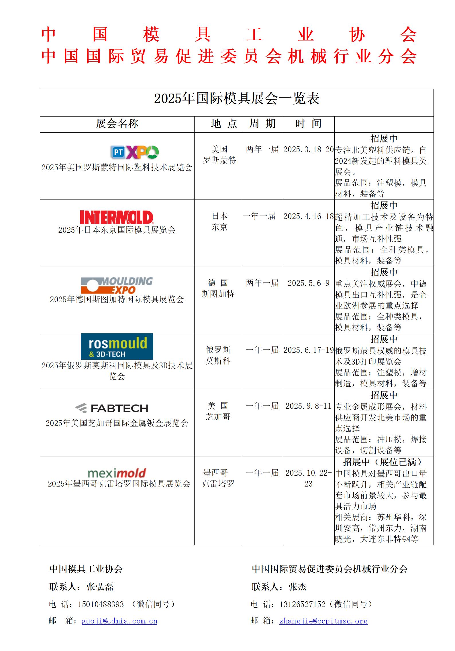 2025年國際模具展會一覽表