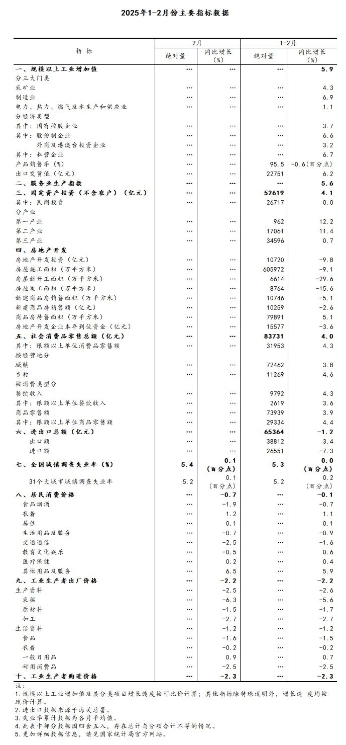 根據(jù)第五次全國經(jīng)濟(jì)普查結(jié)果對社會消費(fèi)品零售總額、網(wǎng)上零售額數(shù)據(jù)進(jìn)行了修訂,2025年社會消費(fèi)品零售總額、網(wǎng)上零售額相關(guān)指標(biāo)月度增速按照可比口徑計(jì)算。