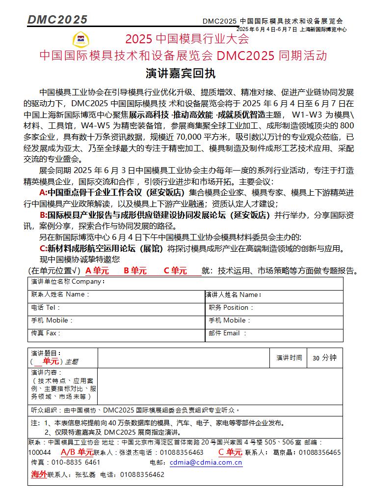 DMC2025中國模具行業大會演講嘉賓回執